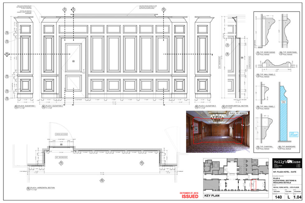 Turning an existing location into the Plaza Hotel seen in movie by adding wall plugs and millwork pieces to tie into existing space.